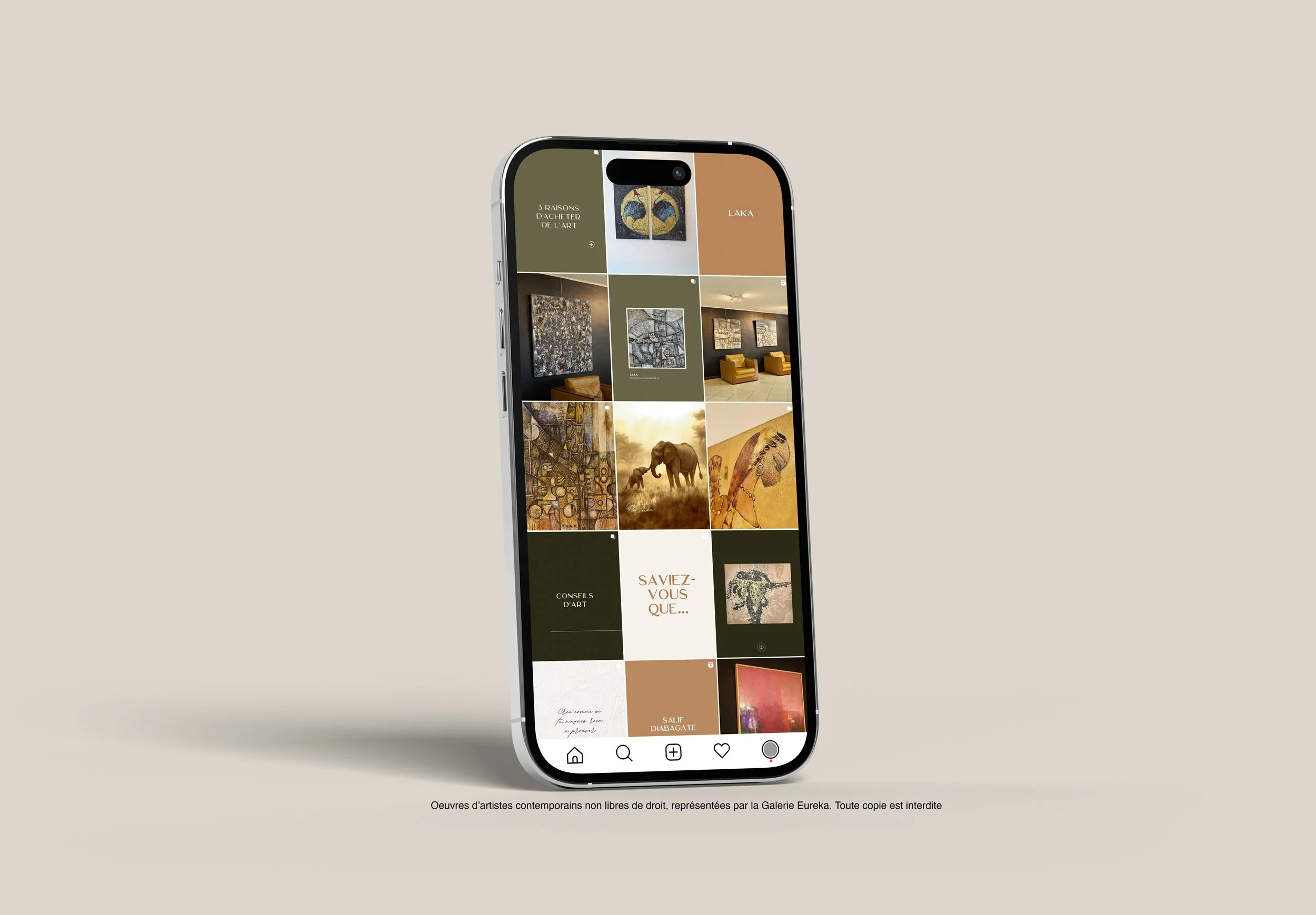 Pour la Galerie Eureka, nous assurons la production de contenus (photos, vidéos) ainsi que la gestion de sa ligne éditoriale sur les réseaux sociaux. L’objectif : valoriser les artistes, structurer la communication et renforcer l’image de la galerie — un lieu ancré dans la nature, porteur d’une énergie apaisante et d’un sentiment de bien-être. Nous avons enrichi la charte existante pour construire un univers visuel plus cohérent, marqué par une épuration maîtrisée qui distingue la galerie dans le paysage artistique local.